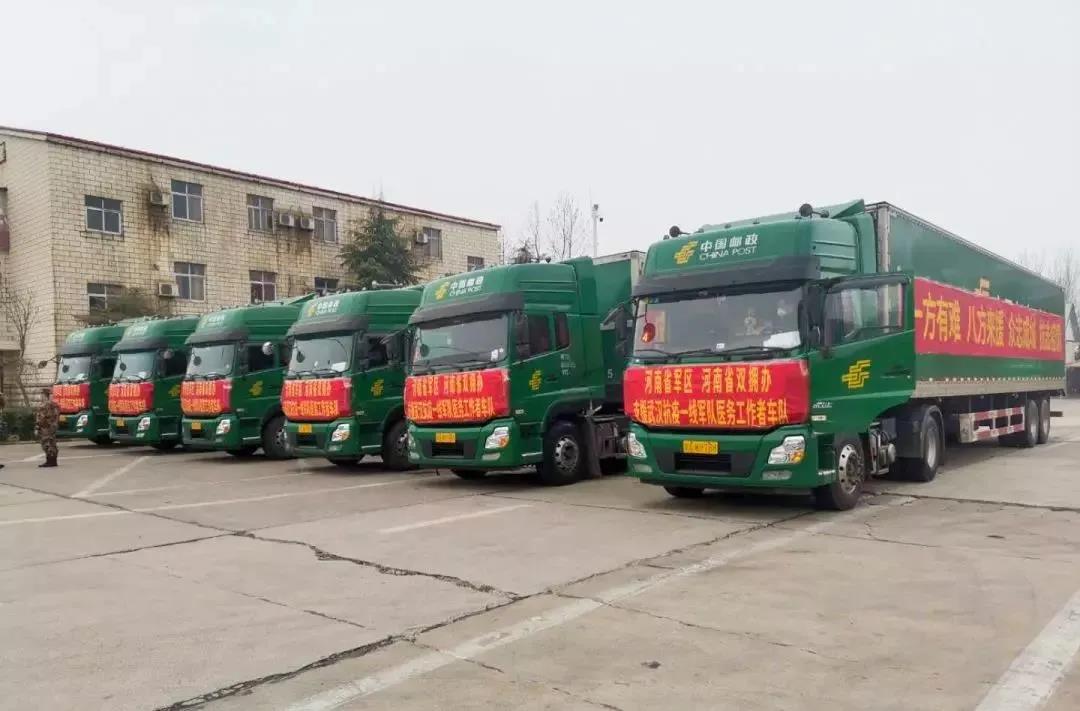 2月26日下午,6輛郵車(chē)滿載著河南省軍區(qū)和省雙擁辦捐贈(zèng)的外科口罩、手套、防護(hù)服、即食食品等11000余箱(包)物資從河南出發(fā)疾馳武漢,為身在武漢疫區(qū)的軍隊(duì)醫(yī)務(wù)工作者送去來(lái)自河南的援助物資。