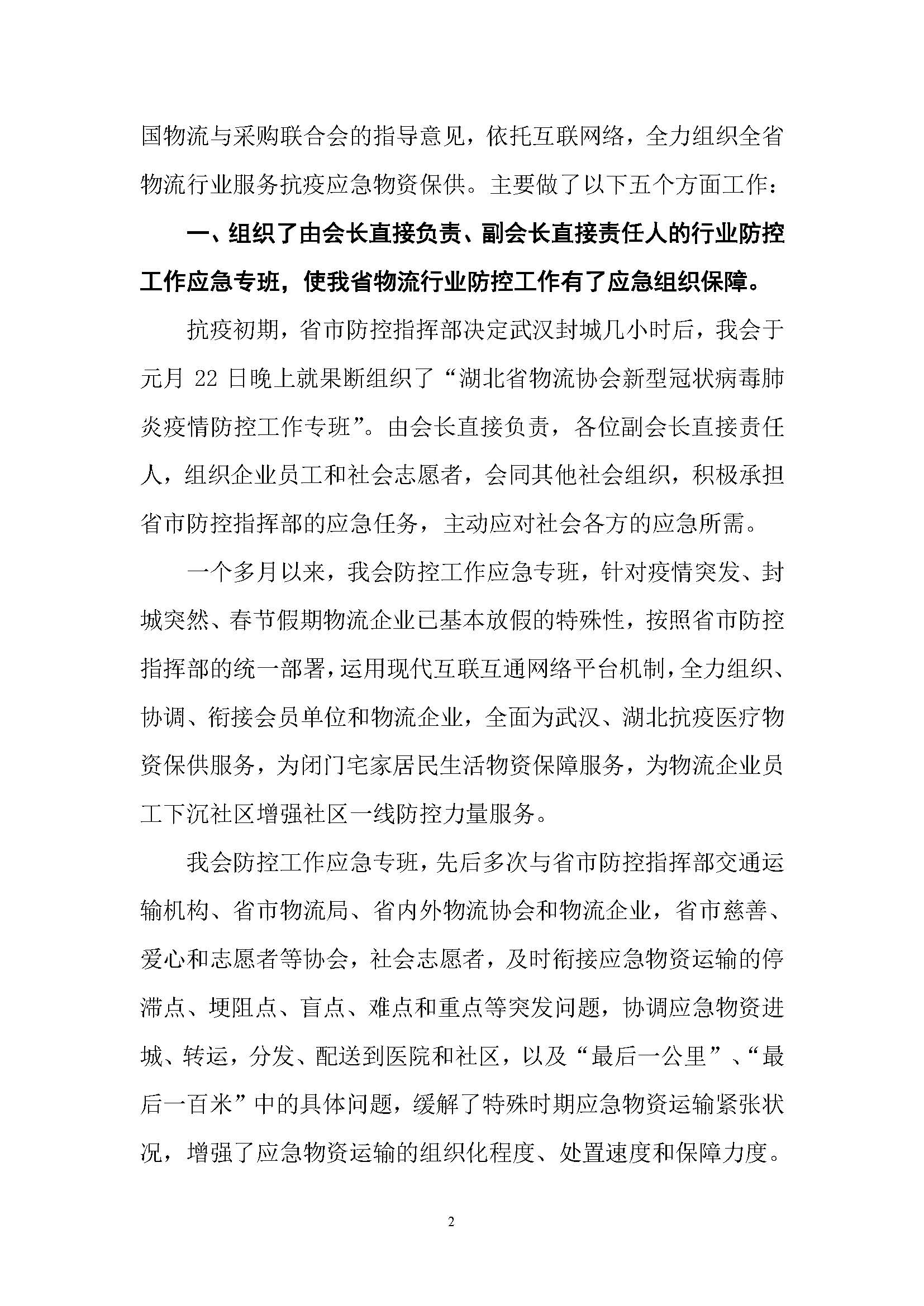 湖北省物流協(xié)會(huì):關(guān)于我會(huì)一個(gè)多月來抗疫保供行業(yè)服務(wù)工作情況匯報(bào)