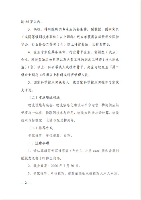 關于增選中國物流與采購聯合會科技獎勵評審專家的通知