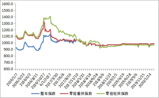 分車型看,各車型指數(shù)環(huán)比回升。其中,整車指數(shù)為988.36點,比上周回升0.09%;零擔(dān)重貨指數(shù)為988.03點,比上周回升0.12%;零擔(dān)輕貨指數(shù)為967.94點,比上周回升0.01%。
