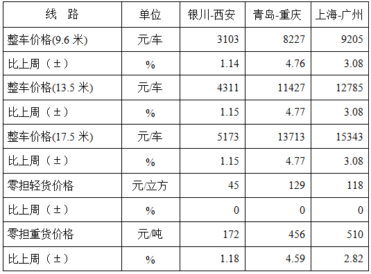 表1 本周部分線路平均價格及環(huán)比情況對比