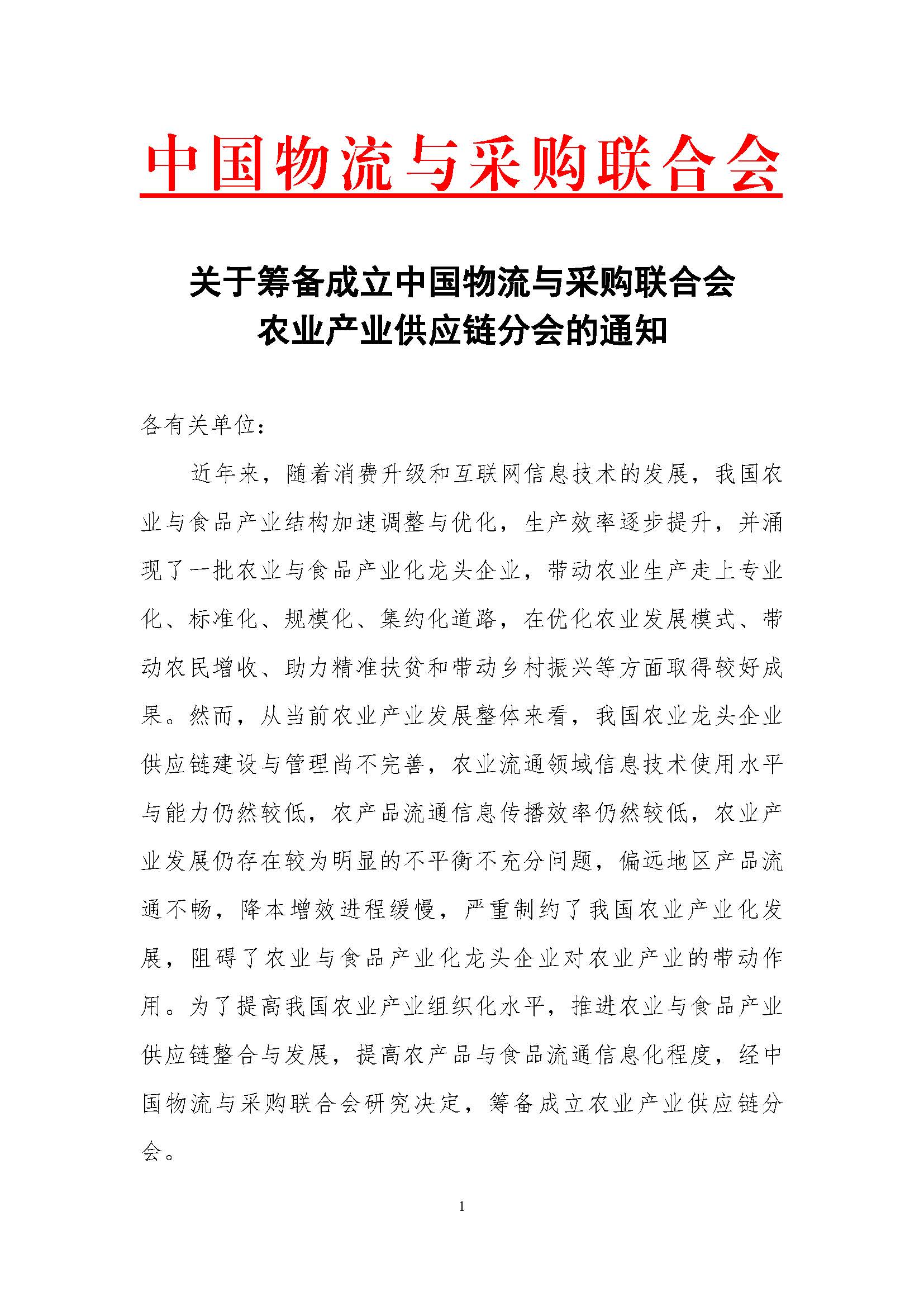 關于籌備成立中國物流與采購聯合會農業產業供應鏈分會的通知.pdf