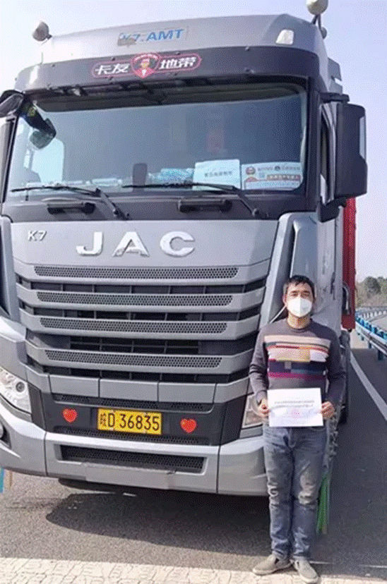 33歲的他常年跑貨運,聽說甘肅靜寧縣李店鎮給湖北捐贈物資,需要運輸,二話不說就答應了,連運費都沒要。