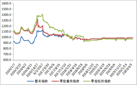 分車型看,除零擔(dān)輕貨指數(shù)外,其他車型指數(shù)延續(xù)回升態(tài)勢。其中,整車指數(shù)為990.07點(diǎn),比上周回升0.05%;零擔(dān)重貨指數(shù)為990.12點(diǎn),比上周回升0.02%;零擔(dān)輕貨指數(shù)為967.62點(diǎn),與上周基本持平。