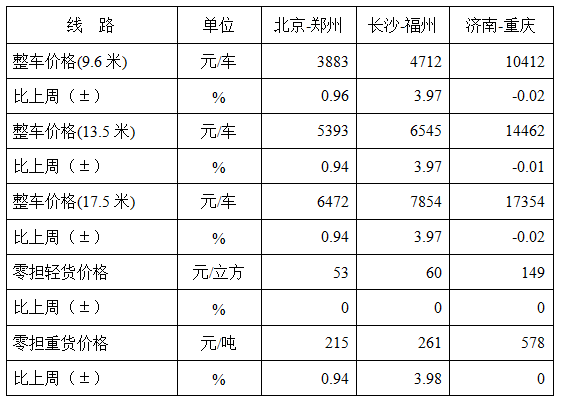 表1 本周部分線路平均價格及環(huán)比情況對比