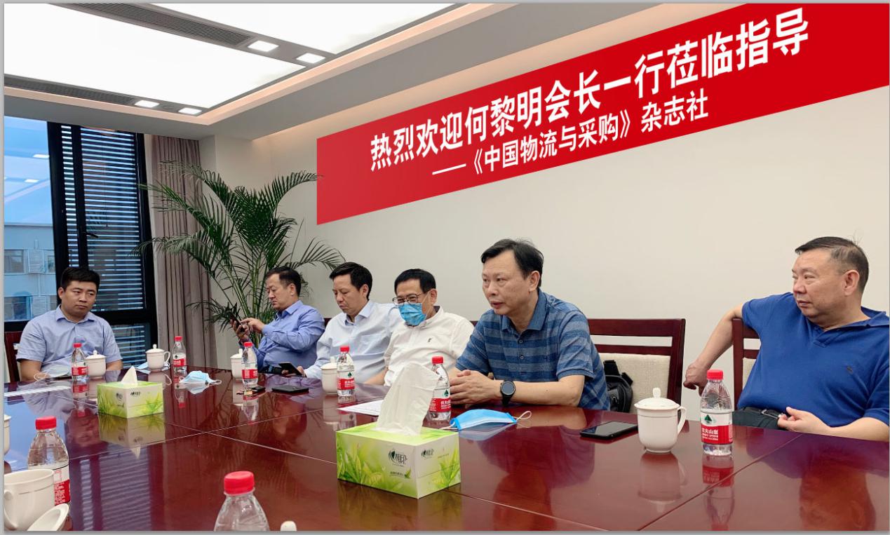 5月25日下午,中國(guó)物流與采購(gòu)聯(lián)合會(huì)會(huì)長(zhǎng)何黎明,副會(huì)長(zhǎng)兼秘書(shū)長(zhǎng)崔忠付,副會(huì)長(zhǎng)任豪祥,副會(huì)長(zhǎng)賀登才,黨委副書(shū)記兼紀(jì)委書(shū)記余平一行蒞臨《中國(guó)物流與采購(gòu)》雜志社(以下簡(jiǎn)稱(chēng)“雜志社”)車(chē)公莊辦公區(qū)指導(dǎo)工作。中國(guó)物流股份有限公司總經(jīng)理李向陽(yáng)等陪同。《中國(guó)物流與采購(gòu)》雜志社社長(zhǎng)劉乃杰攜全體員工對(duì)何黎明一行的蒞臨表示熱烈歡迎。