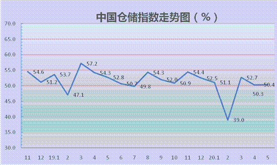 中國物流與采購聯(lián)合會與中儲發(fā)展股份有限公司聯(lián)合調(diào)查的中國倉儲指數(shù),2020年5月份為50.4%,較上月小幅回升0.1個百分點(diǎn),連續(xù)三個月保持在榮枯線以上。
