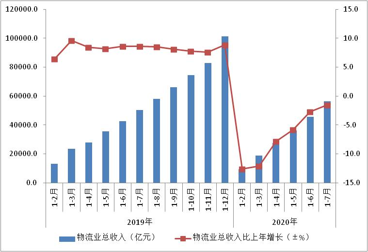 圖32019-2020年物流業(yè)總收入及增長情況