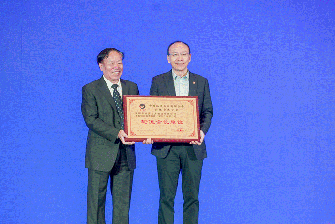 會議期間,賀登才向陳波授予了中物聯公路貨運分會當值會長牌匾。