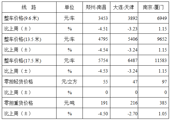 分車型看,各車型指數(shù)環(huán)比有所回落。其中,整車指數(shù)為989.09點(diǎn),比上周回落0.03%;零擔(dān)輕貨指數(shù)為968.80點(diǎn),比上周回落0.01%;零擔(dān)重貨指數(shù)為988.96點(diǎn),比上周回落0.04%。