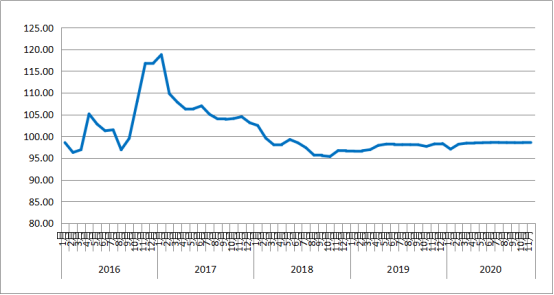 圖1 2016年以來各月中國公路物流運價指數(shù)