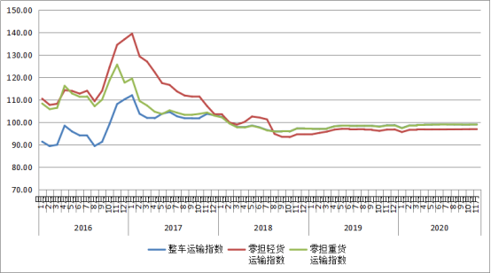 圖2 2016年以來各月中國公路物流運價分車型指數(shù)