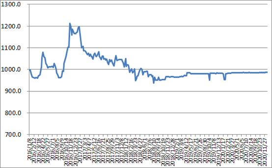 本周(2020年12月14日-12月18日),由中國物流與采購聯合會和林安物流集團聯合調查的中國公路物流運價指數987.11點,比上周回升0.02%。