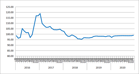 圖1 2016年以來各月中國公路物流運價指數(shù)