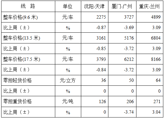 分車型看,各車型指數環比有不同程度回落。其中,整車指數為1005.83點,比上月回落0.07%;零擔輕貨指數為981.94點,與上月基本持平;零擔重貨指數為1003.93點,比上月回落0.09%。