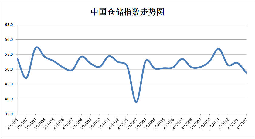 中國物流與采購聯合會和中儲發展股份有限公司聯合調查的中國倉儲指數,2021年2月份為48.9%,較上月回落3.3個百分點,時隔一年再次落入50%以下的收縮區間,新訂單、業務量、業務利潤、周轉效率、企業員工等主要分項指數均有較為明顯的回落,比較明顯地反映出了春節因素的影響。從分項指數變化情況來看,有以下幾個特點:
