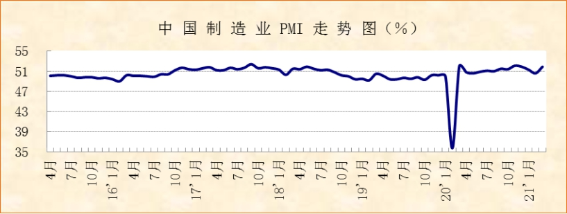 中國物流與采購聯合會、國家統計局服務業調查中心發布的2021年3月份中國制造業采購經理指數(PMI)為51.9%,較上月上升1.3個百分點,表明經濟恢復勢頭有所加快。分項指數變化顯示,產業鏈聯動回升,表現在經濟恢復動力增強,市場價格加快上升,各行業均加快增長,大中小型企業協同回升。原材料、人力和物流等要素成本上升問題值得關注。