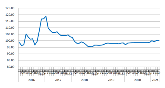2021年4月份,由中國物流與采購聯(lián)合會和林安物流集團(tuán)聯(lián)合調(diào)查的中國公路物流運價指數(shù)為100.2點,比上月回落0.07%,比去年同期回升1.7%。從各周指數(shù)看,第二、三周運價指數(shù)環(huán)比回升,第一、四、五周運價指數(shù)環(huán)比回落。