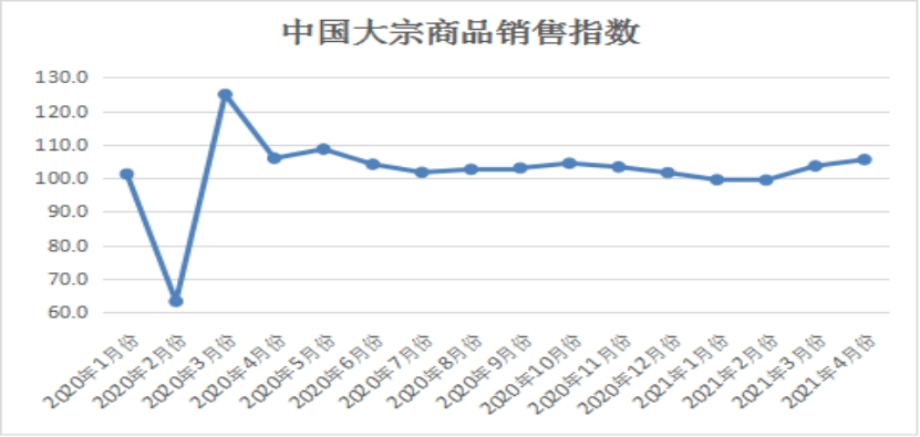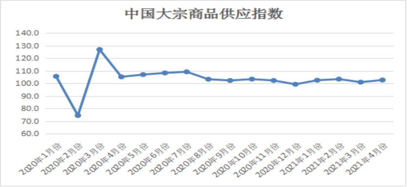 由中國物流與采購聯合會調查、發布的2021年4月份中國大宗商品指數(CBMI)為103.3%,較上月上升1.2個百分點,連續四個月上升。各分項指數中,供應指數和銷售指數繼續上升,庫存指數有所回落。數據顯示,需求明顯上升,生產活動加快,供需銜接良好,商品庫存回落,國內大宗商品市場穩中向好的態勢進一步顯現。不過,值得關注的是近期大宗商品價格不斷上漲,一方面對相關商品生產的刺激作用加大,但另一方面也將會提高企業的原材料采購和生產成本,進而抑制需求。