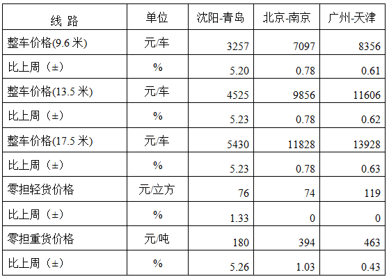 表1 本周部分線路平均價格及環(huán)比情況對比