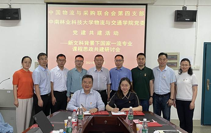 2021年6月6日,在中國物流與采購聯合會黨委和中南林業科技大學黨委的指導與支持下,中國物流與采購聯合會第四黨支部與中南林業科技大學物流與交通學院黨委在湖南長沙開展黨建共建活動。活動以“新文科背景下國家一流專業課程思政建設”為主題召開了共建交流座談會并舉行了共建協議現場簽約儀式。中國物流與采購聯合會黨委常委、副會長任豪祥,中南林業科技大學黨委委員、副校長王忠偉,中國物流與采購聯合會第四黨支部書記、副秘書長郭肇明,中南林業科技大學教務處處長劉高強出席活動并講話。活動由中南林業科技大學物流與交通學院院長龐燕主持。中國物流與采購聯合會第四黨支部及中南林業科技大學物流與交通學院黨委相關同志參加活動。
