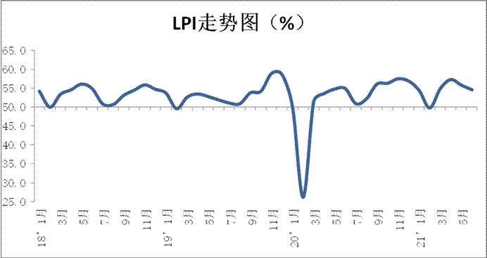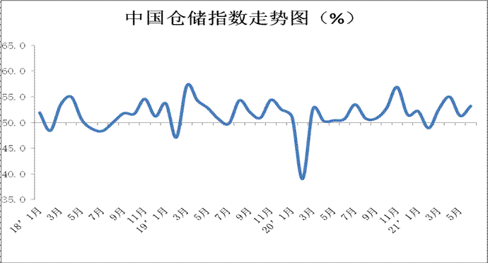中國物流與采購聯合會發布的2021年6月份中國物流業景氣指數為54.6%,較上月回落1.2個百分點;中國倉儲指數為53.2%,較上月回升1.9個百分點。