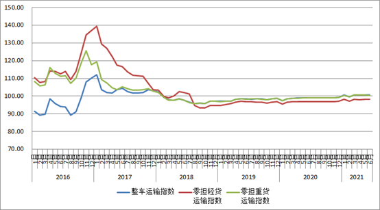 圖2 2016年以來各月中國公路物流運價分車型指數