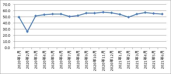 物流行業競爭日趨激烈,物流企業對上游企業議價能力普遍偏弱,同時企業經營成本持續上升,企業盈利情況沒有明顯改觀。從物流景氣指數分項來看,主營業務成本指數始終高于主營業務利潤指數,2021年1-6月份主營業務成本指數和主營業務利潤指數差距進一步擴大,反映出成本增長壓縮利潤空間。從重點企業調查來看,今年以來一、二季度重點企業成本分別增長22.3%和30%,而收入利潤率均不到5%,明顯低于工業企業8%的水平。