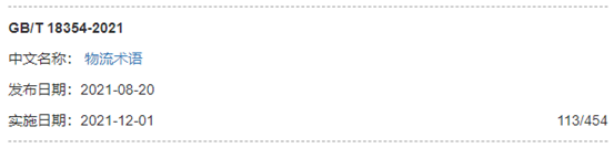 《物流術語》國家標準在2001年首次發(fā)布,此次為該標準經第二次修訂后發(fā)布。本次修訂后共分7章,269條術語。
