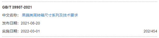 標準的制定,可為果蔬類產品包裝標準化、物流單元化作業(yè)提供技術支撐,為推動果蔬類產品周轉箱循環(huán)共用管理奠定基礎。