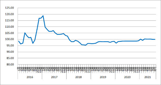 圖1 2016年以來各月中國公路物流運價指數