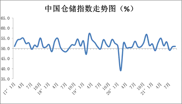 中國(guó)物流與采購(gòu)聯(lián)合會(huì)發(fā)布的2021年9月份中國(guó)物流業(yè)景氣指數(shù)為54%,較上月回升4.5個(gè)百分點(diǎn);中國(guó)倉(cāng)儲(chǔ)指數(shù)為51%,較上月回升0.2個(gè)百分點(diǎn)。