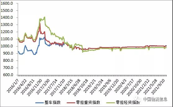 分車型看,部分各車型指數(shù)環(huán)比上周波動(dòng)較小。其中,整車指數(shù)為1008.90點(diǎn),比上周回升0.01%;零擔(dān)輕貨指數(shù)為980.82點(diǎn),與上周基本持平;零擔(dān)重貨指數(shù)為1007.12點(diǎn),比上周回落0.02%。