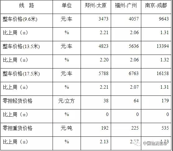表1 本周部分線路平均價(jià)格及環(huán)比情況對(duì)比