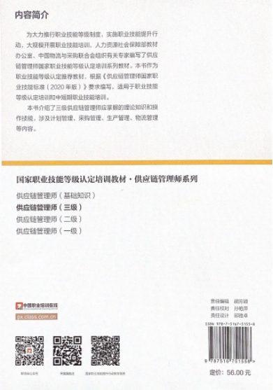 《供應(yīng)鏈管理師國(guó)家職業(yè)技能等級(jí)認(rèn)定培訓(xùn)教材》由郭肇明、史文月主編,共包括三級(jí)、二級(jí)、一級(jí)、基礎(chǔ)四本。教材嚴(yán)格按照《供應(yīng)鏈管理師國(guó)家職業(yè)技能標(biāo)準(zhǔn)(2020年版)》的要求編寫,內(nèi)容上突出職業(yè)能力優(yōu)先的原則,結(jié)構(gòu)上按照職業(yè)功能模塊分級(jí)別編寫,體現(xiàn)了“教、學(xué)、做”一體化的編寫特色。中物聯(lián)嚴(yán)格遴選標(biāo)準(zhǔn)編寫專家、頭部企業(yè)實(shí)踐專家、職業(yè)培訓(xùn)機(jī)構(gòu)優(yōu)秀講師、具有豐富供應(yīng)鏈管理專業(yè)教學(xué)經(jīng)驗(yàn)的高校一線教師、國(guó)家級(jí)競(jìng)賽獲獎(jiǎng)選手等組成編寫隊(duì)伍,投入了大量的人力、物力、財(cái)力,數(shù)易其稿,歷經(jīng)一年時(shí)間完成。