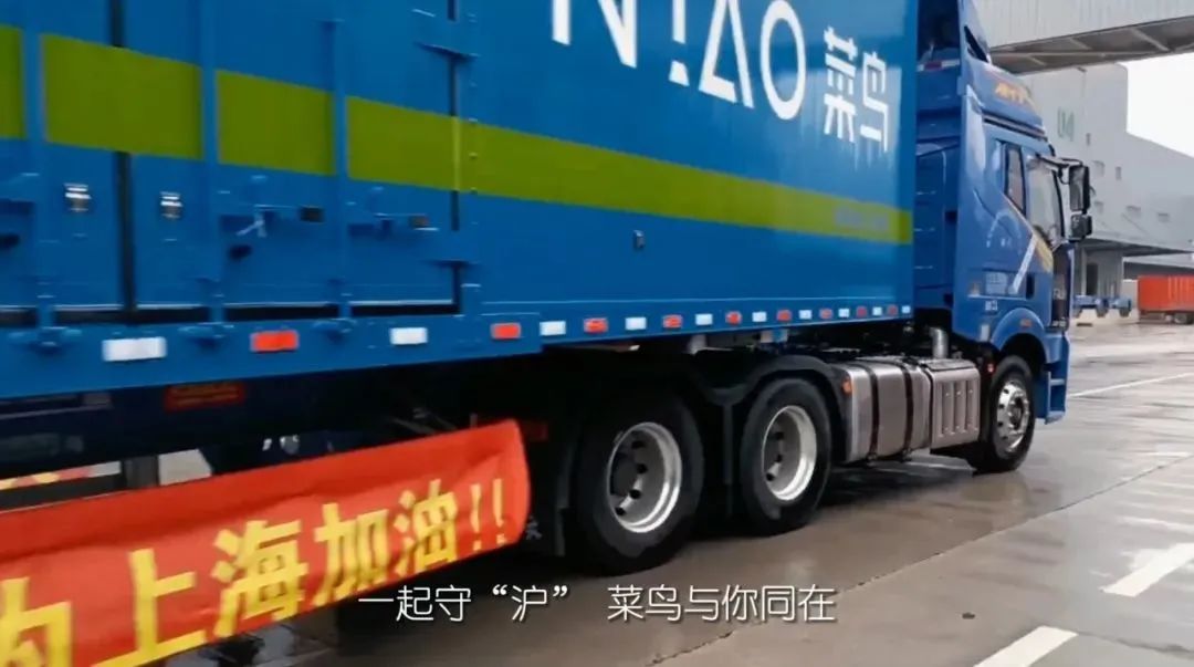 近日不斷有網(wǎng)友在上海抗疫隊伍中,發(fā)現(xiàn)菜鳥自營物流車隊的身影。