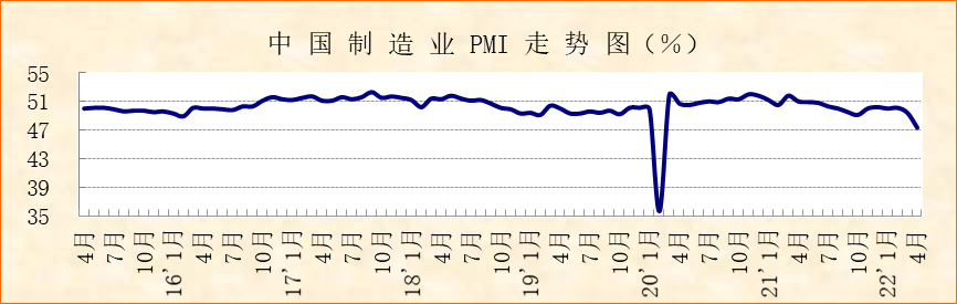 中國物流與采購聯合會、國家統計局服務業調查中心發布的2022年4月份中國制造業采購經理指數(PMI)為47.4%,較上月下降2.1個百分點,為2020年3月以來最低水平,經濟下行壓力加大。從分項指數和行業PMI變化來看,國內疫情多點散發和國際地緣政治沖突等短期因素的影響仍在持續,對物流和就業沖擊較大,原材料價格持續高漲,制造業三重壓力加大,中上游行業增速回落明顯。但高技術制造業和消費品制造業相對穩定,中小型企業穩定性有所鞏固。