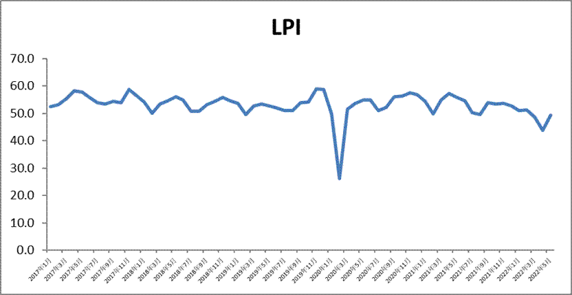 中國物流與采購聯(lián)合會發(fā)布的2022年5月份中國物流業(yè)景氣指數(shù)為49.3%,較上月回升5.5個百分點。分項指數(shù)中,業(yè)務(wù)總量指數(shù)、庫存周轉(zhuǎn)指數(shù)、設(shè)備利用率指數(shù)和新訂單指數(shù)回升明顯。分地區(qū)來看,東部地區(qū)物流景氣活躍度大幅提高,對總指數(shù)形成較好支撐,有利于全國物流運行的平穩(wěn)復(fù)蘇。本月指數(shù)明顯回升,顯示出疫情防控常態(tài)化基礎(chǔ)上我國物流與供應(yīng)鏈運行保持強(qiáng)勁韌性。