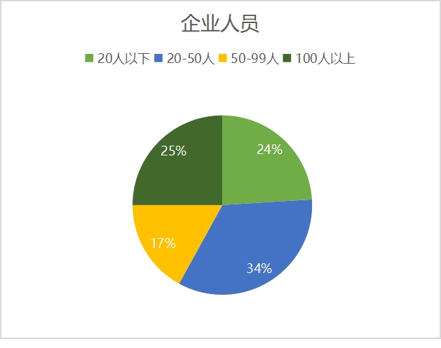 參與此次調查的企業中,企業人員在20人以下的占比24%;企業人員在20-50人的占比34%;企業人員在50-99人的占比17%;企業人員在100人以上的占比25%。