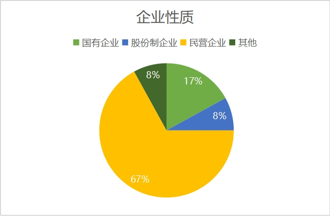 參與此次調查的企業中,國有企業占比17%;股份制企業占比8%;民營企業占比67%;其他企業占比8%。