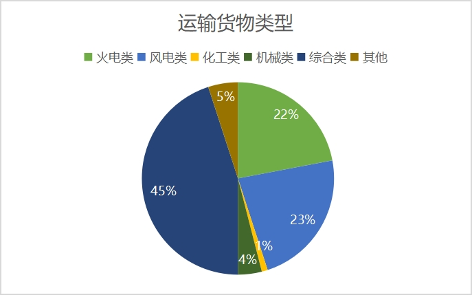 按照主要從事的運輸貨物類型劃分,以火電類運輸(如變壓器等)為主占比22%;以風電類運輸(如葉片等)為主占比23;以化工類運輸(如氨合成塔等)為主占比1%;以機械類運輸(如裝載機)為主占比4%;綜合類運輸占比45%;其他類型運輸占比5%。