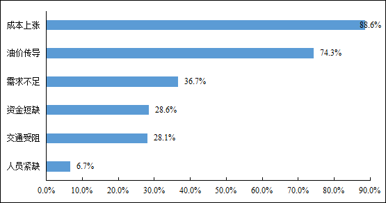 調查數據顯示,上半年多種因素疊加,企業除了面臨外部需求不足的問題,內部經營還面臨三大問題:一是成本上漲,二是油價傳導,三是資金短缺,增加了市場穩增長的難度。