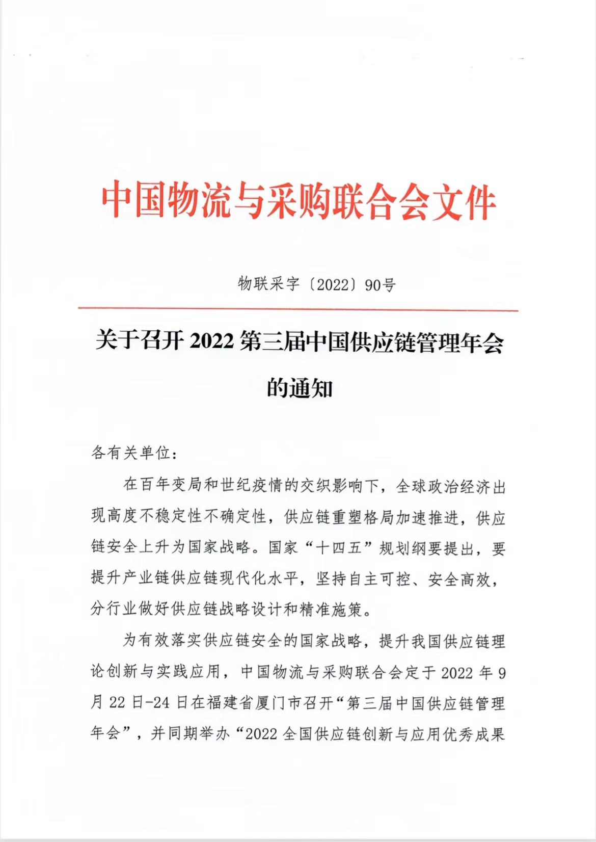 關于召開2022第三屆中國供應鏈管理年會的通知
