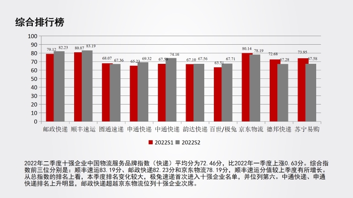 中國物流服務品牌指數(快遞物流)報告2022年二季度