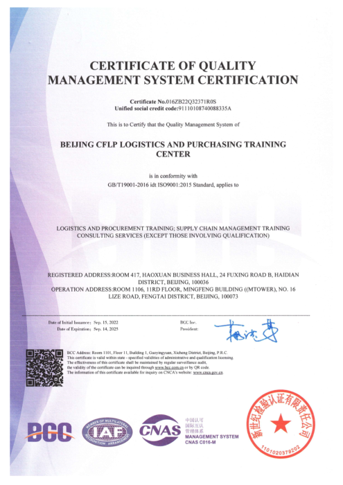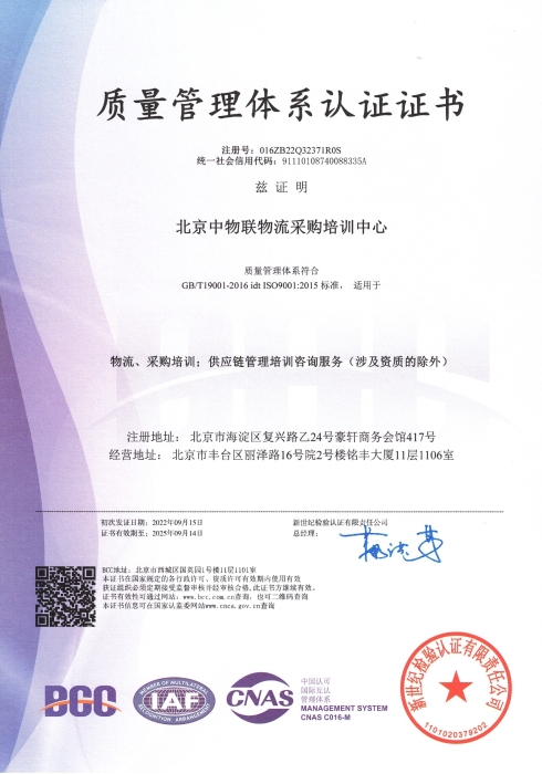 近日,北京中物聯(lián)物流采購(gòu)培訓(xùn)中心(以下簡(jiǎn)稱北京中物聯(lián))通過(guò)了ISO9001質(zhì)量管理體系認(rèn)證,認(rèn)證范圍包括物流、采購(gòu)培訓(xùn)、供應(yīng)鏈管理培訓(xùn)咨詢服務(wù)等。北京中物聯(lián)是首個(gè)通過(guò)ISO9001質(zhì)量管理體系認(rèn)證的國(guó)家級(jí)行業(yè)協(xié)會(huì)培訓(xùn)中心,這標(biāo)志著北京中物聯(lián)在物流、采購(gòu)與供應(yīng)鏈培訓(xùn)認(rèn)證領(lǐng)域的管理體系上達(dá)到了國(guó)際標(biāo)準(zhǔn),在質(zhì)量管理、系統(tǒng)建設(shè)和規(guī)范化管理等方面取得了新進(jìn)展。未來(lái)北京中物聯(lián)將繼續(xù)為行業(yè)提供更好的培訓(xùn)認(rèn)證產(chǎn)品與服務(wù)。