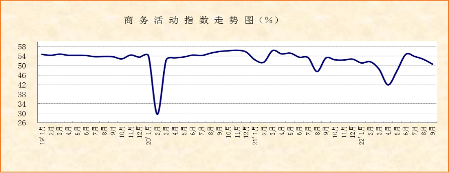 中國物流與采購聯(lián)合會、國家統(tǒng)計局服務(wù)業(yè)調(diào)查中心發(fā)布的2022年9月份中國非制造業(yè)商務(wù)活動指數(shù)為50.6%,較上月下降2個百分點,連續(xù)3個月環(huán)比下降;新訂單指數(shù)為43.1%,較上月下降6.7個百分點。綜合指數(shù)變化,商務(wù)活動指數(shù)和新訂單指數(shù)較上月均有較為明顯下降,非制造業(yè)供需增速較上月有明顯放緩,恢復(fù)力度繼續(xù)趨弱,需求收縮壓力尤為明顯。