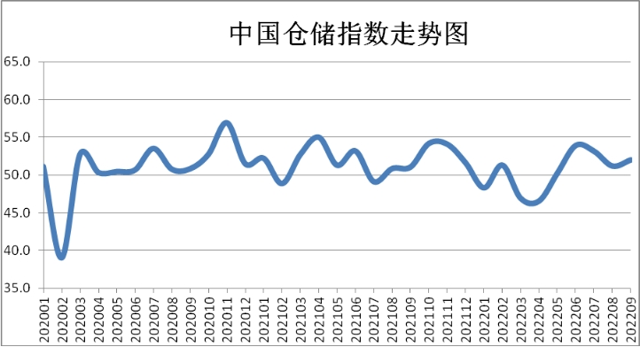 中國(guó)物流與采購(gòu)聯(lián)合會(huì)和中儲(chǔ)發(fā)展股份有限公司聯(lián)合調(diào)查的中國(guó)倉(cāng)儲(chǔ)指數(shù),2022年9月份為52.0%,較上月上升0.8個(gè)百分點(diǎn),連續(xù)五個(gè)月保持在榮枯線以上,業(yè)務(wù)量、業(yè)務(wù)利潤(rùn)、期末庫(kù)存、企業(yè)員工等分項(xiàng)指數(shù)均有小幅上升。綜合來(lái)看,倉(cāng)儲(chǔ)業(yè)務(wù)需求增勢(shì)較好,行業(yè)整體保持平穩(wěn)向好態(tài)勢(shì)。具體來(lái)看,有以下幾個(gè)特點(diǎn):