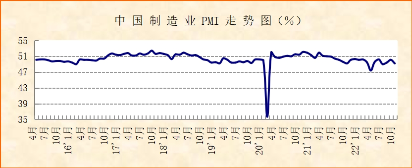 中國物流與采購聯合會、國家統計局服務業調查中心發布的2022年10月份中國制造業采購經理指數(PMI)為49.2%,較上月下降0.9個百分點,在連續2個月環比上升后再次下降,顯示指數走勢有所波動,經濟恢復勢頭仍需鞏固。指數下降,主要是由于三方面因素,一是季節性因素,從歷史數據來看,多數年份內10月指數水平低于9月。二是10月國內疫情多點頻發,對多地經濟有所擾動。三是國際大宗商品波動頻頻,對國內經濟影響持續。