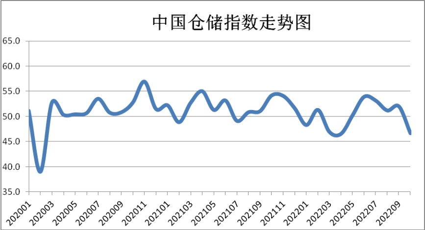 中國物流與采購聯合會和中儲發展股份有限公司聯合調查的中國倉儲指數,2022年10月份為46.7%,較上月下降5.3個百分點,時隔六個月再次落入榮枯線以下收縮區間,與歷史同期數據相比,回落幅度較為顯著。業務量、設施利用率、期末庫存、平均庫存周轉次數等主要分項指數均有明顯下降,降幅分別達到8.9、7.0、7.7和5.1個百分點。綜合來看,受國內疫情點多面廣頻發影響,行業運行趨勢有所波動。具體來看,有以下幾個特點: