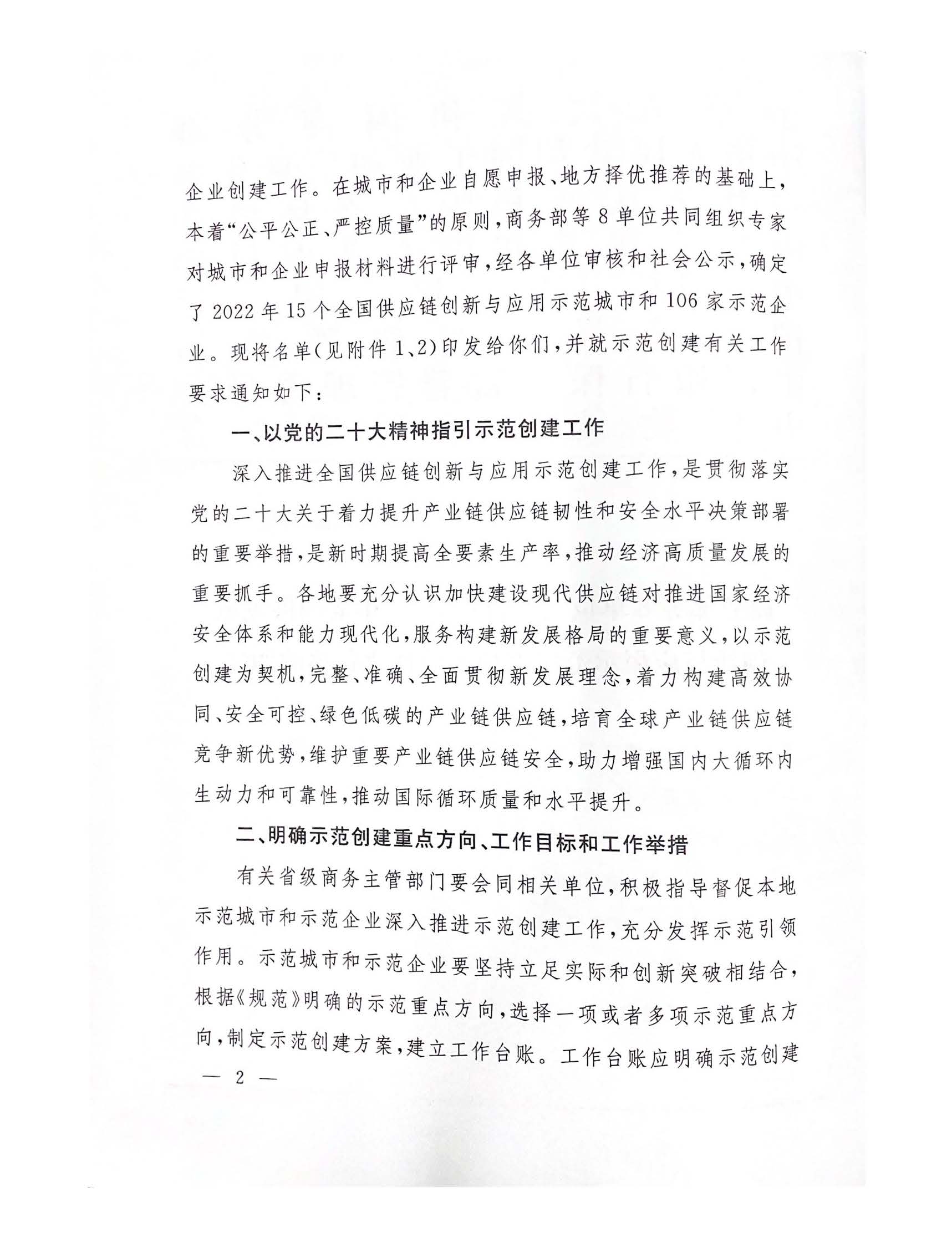 商務(wù)部等8部門(mén)關(guān)于公布2022年全國(guó)供應(yīng)鏈創(chuàng)新與應(yīng)用示范城市和示范企業(yè)名單的通知